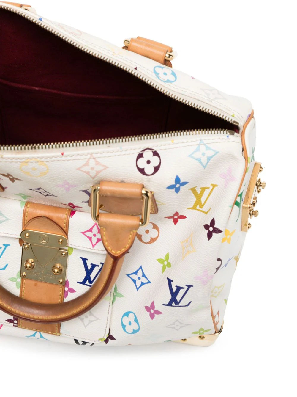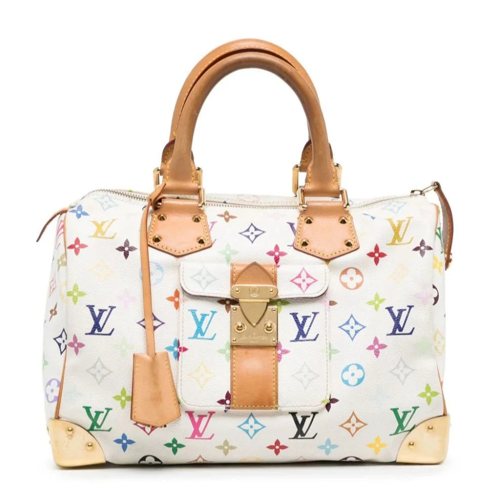 The 2003 Louis Vuitton x Takashi Murakami collaboration features this beautiful speedy 30 bag. Seen on the runway and on many celebrities, this is an iconic piece of fashion history.