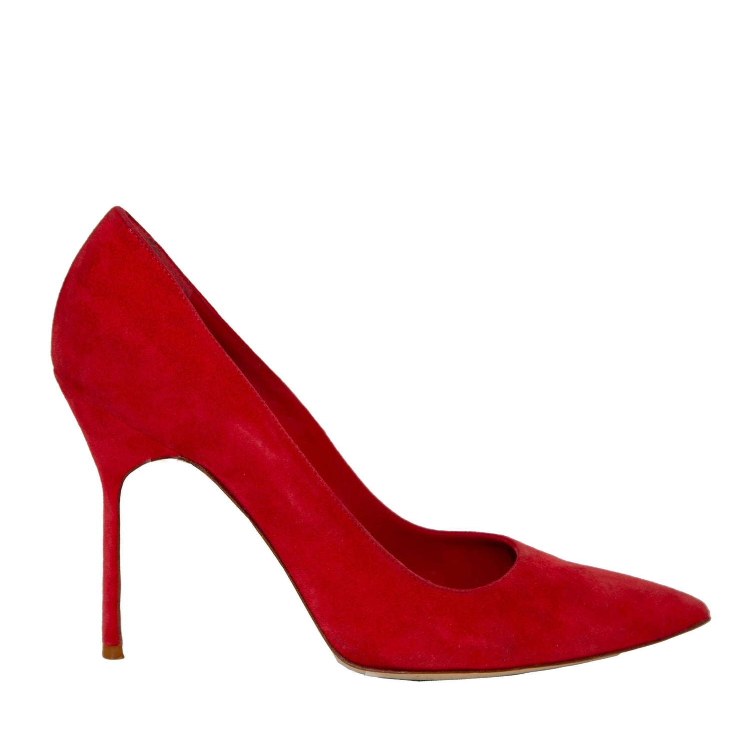 Elevate your style with these Manolo Blahnik Red pumps. The iconic brand offers expert craftsmanship and luxurious design with every step. Made with quality materials, these pumps are sure to make a statement and elevate any outfit. Perfect for any occasion, add these pumps to your wardrobe for a touch of elegance.