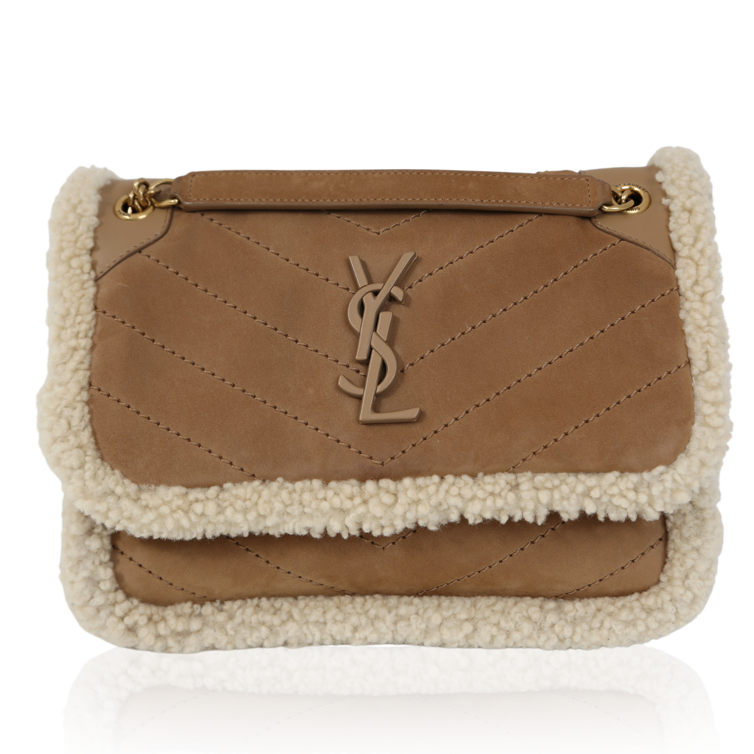 Niki Medium Shearling-Trim Bag