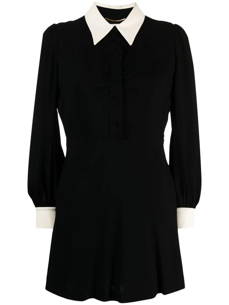 Expertly crafted with a gorgeous contrast collar, this shirt dress from Saint Laurent is a must-have addition to any wardrobe. Designed for a close fit at the chest and waist with a loose fit at the hip. This YSL dress is an investment in your wardrobe, its versatile design allows for endless styling possibilities.