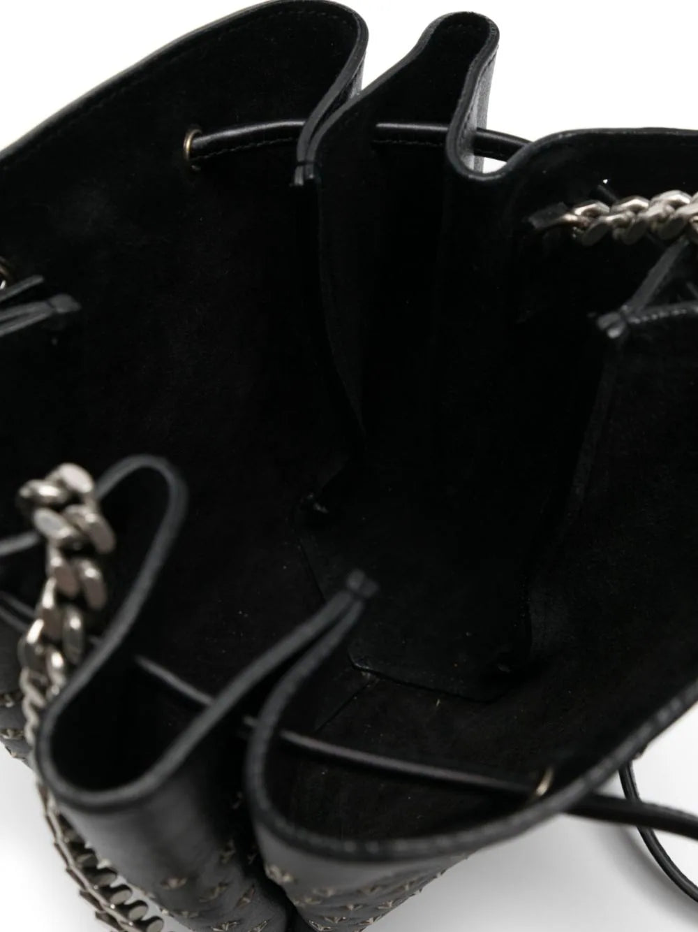 • Leather and chain-link shoulder strap