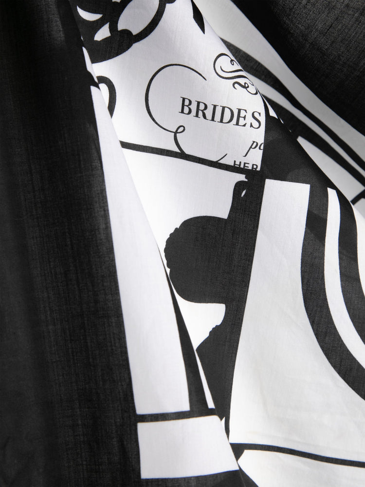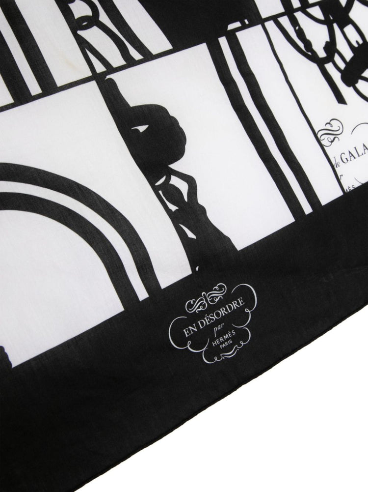 Introducing the Black and White Scarf 'brides' from Hermès. Made with high-quality cotton, this stylish scarf is the perfect accessory for any occasion. With its classic black and white design, it adds a touch of elegance to any outfit. Upgrade your wardrobe with this timeless piece.