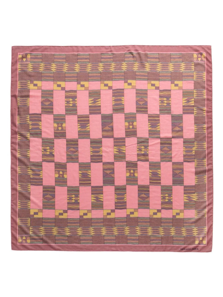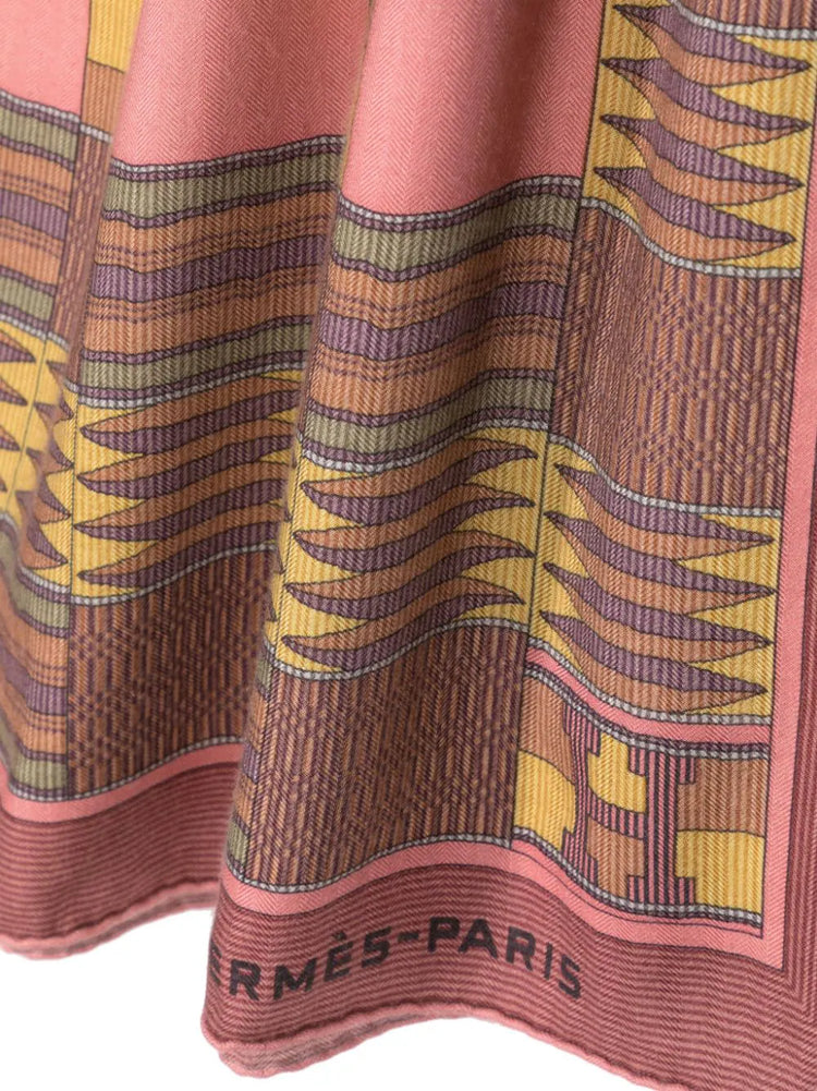 Discover the artful craftsmanship that goes into making a luxurious Hermès scarf. With a detailed creation process that takes over a year per design, each scarf is a masterpiece. With only twelve designs released per year, these scarves are truly unique. Indulge in the ultimate luxury with this Geometric Printed Cashmere Blended Scarf.