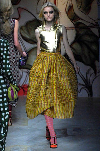 2008 Runway Fairy Yellow Printed Silk Organza Skirt