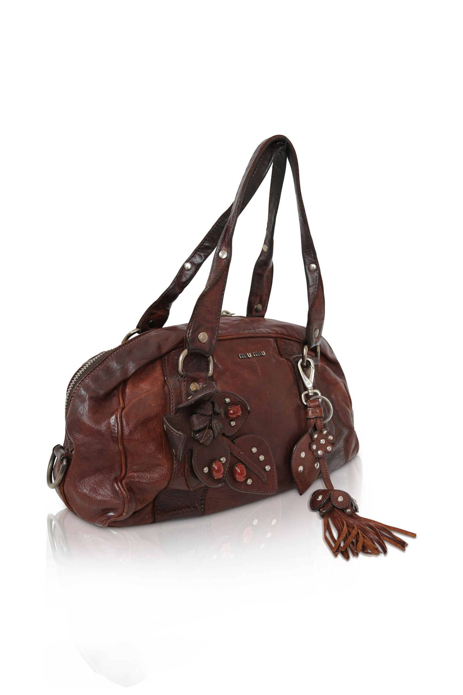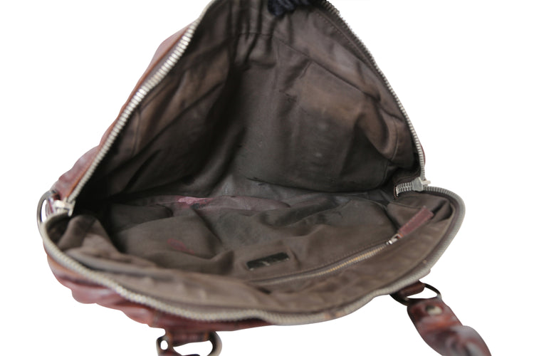 Expertly crafted by Miu Miu, this pre-loved brown and bordeaux leather Boston bag is a timeless addition to any wardrobe. With a professional and sophisticated design, this bag is perfect for any occasion.