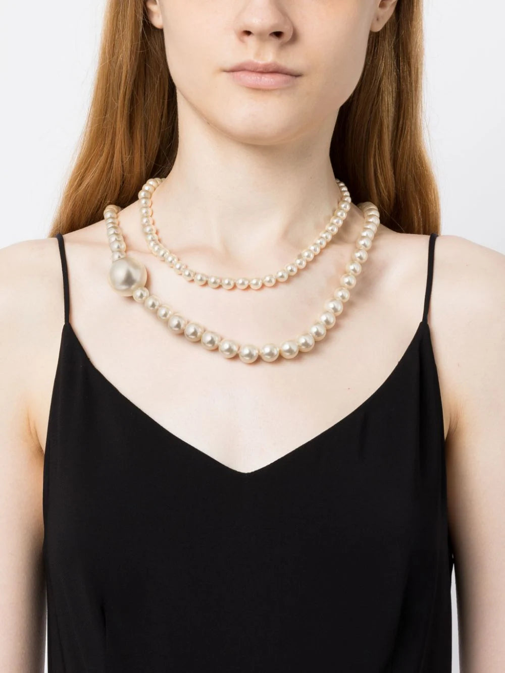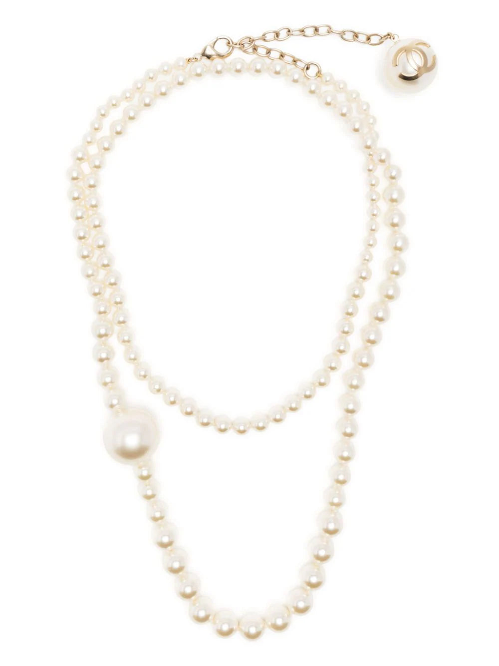 Famous for being one of Coco Chanel’s favourite jewelry adornments, this long necklace features multi-sized pearls and an iconic interlocking CC logo in a sophisticated gold tone.