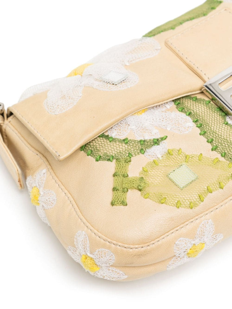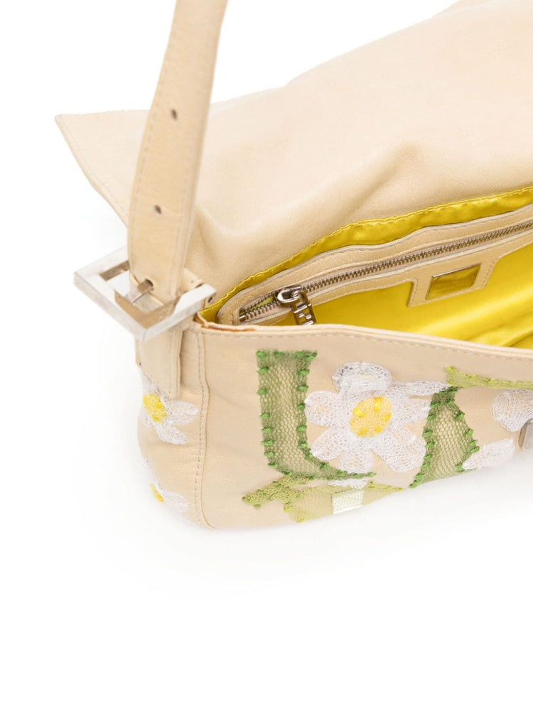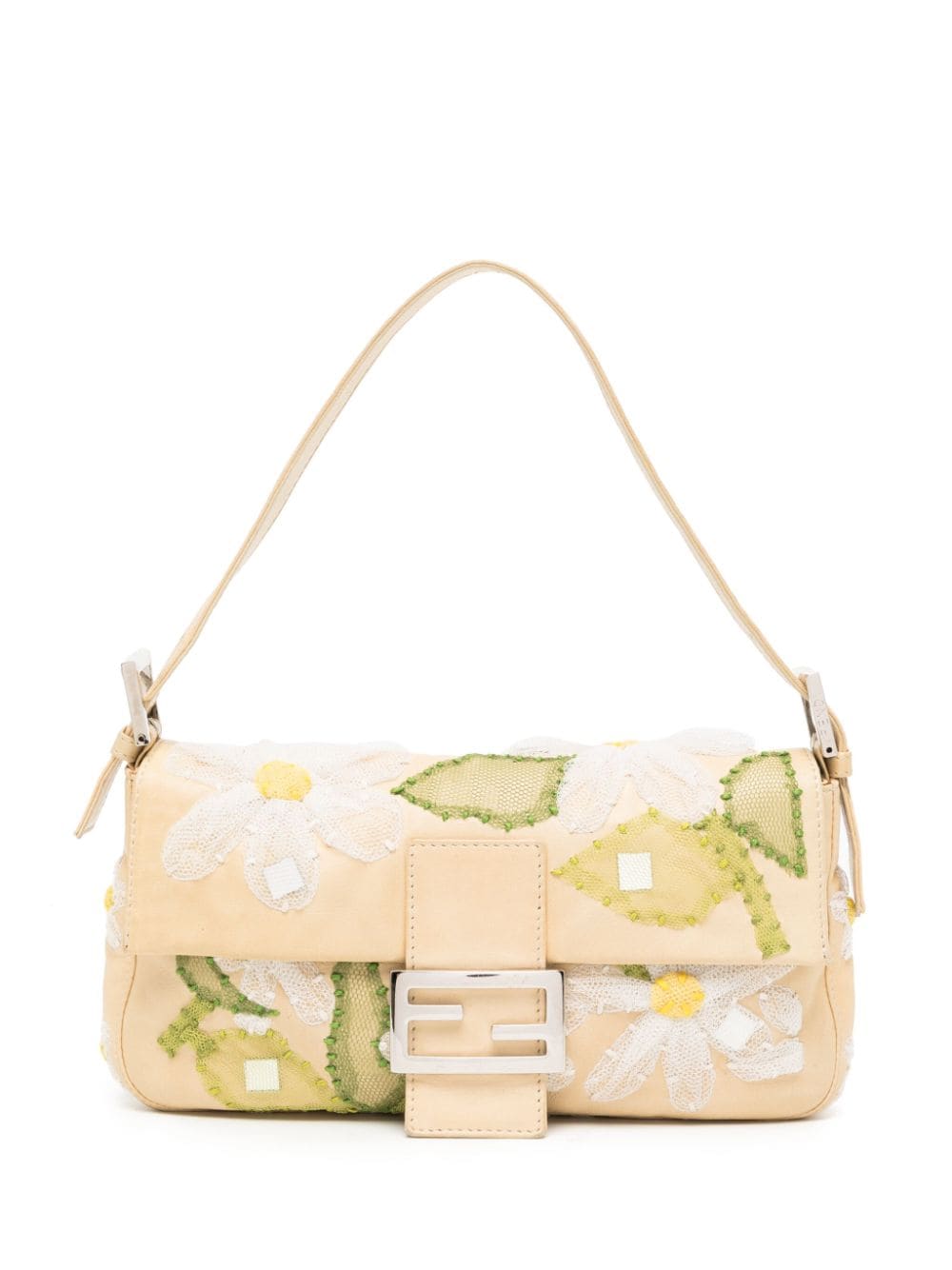 Enhance your vintage style this season with the iconic Fendi Floral Embroidered Baguette. Inspired by the French women carrying baguette bread under their arms, this trendy baguette from Fendi is the perfect piece for spring.