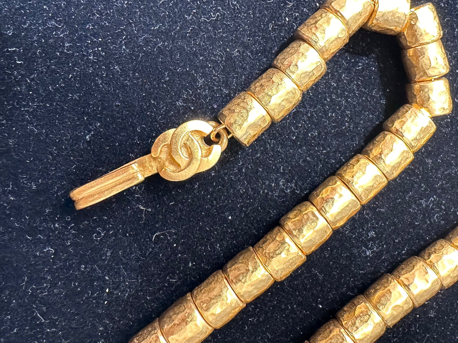 Crafted from gold plated metal, this beautiful pre-owned necklace is an elegant and timeless statement piece. Featuring a chunky bead chain design, a teardrop pendant signature with an engraved interlocking CC logo as well as a secure CC clasp- this necklace is the perfect accessory to valorise your décolleté.