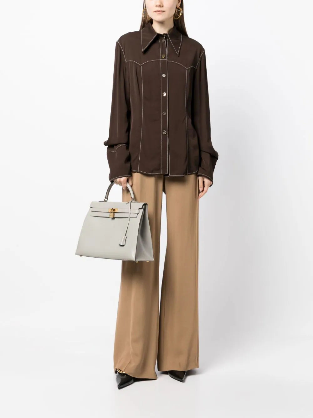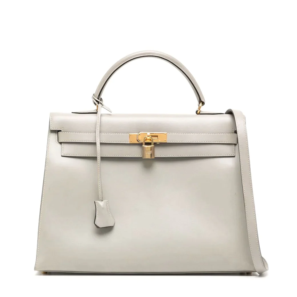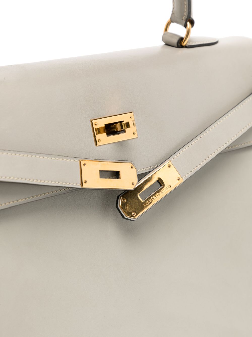 Expertly crafted from smooth box leather, this Hermès Kelly 35 Sellier bag is the epitome of timeless sophistication. Its gold-plated hardware and folding top are secured with a twist-lock and padlock closure, while the interior includes a zip-fastening pocket and patch pocket. It also features a detachable shoulder strap and a set of keys, making it both stylish and secure.