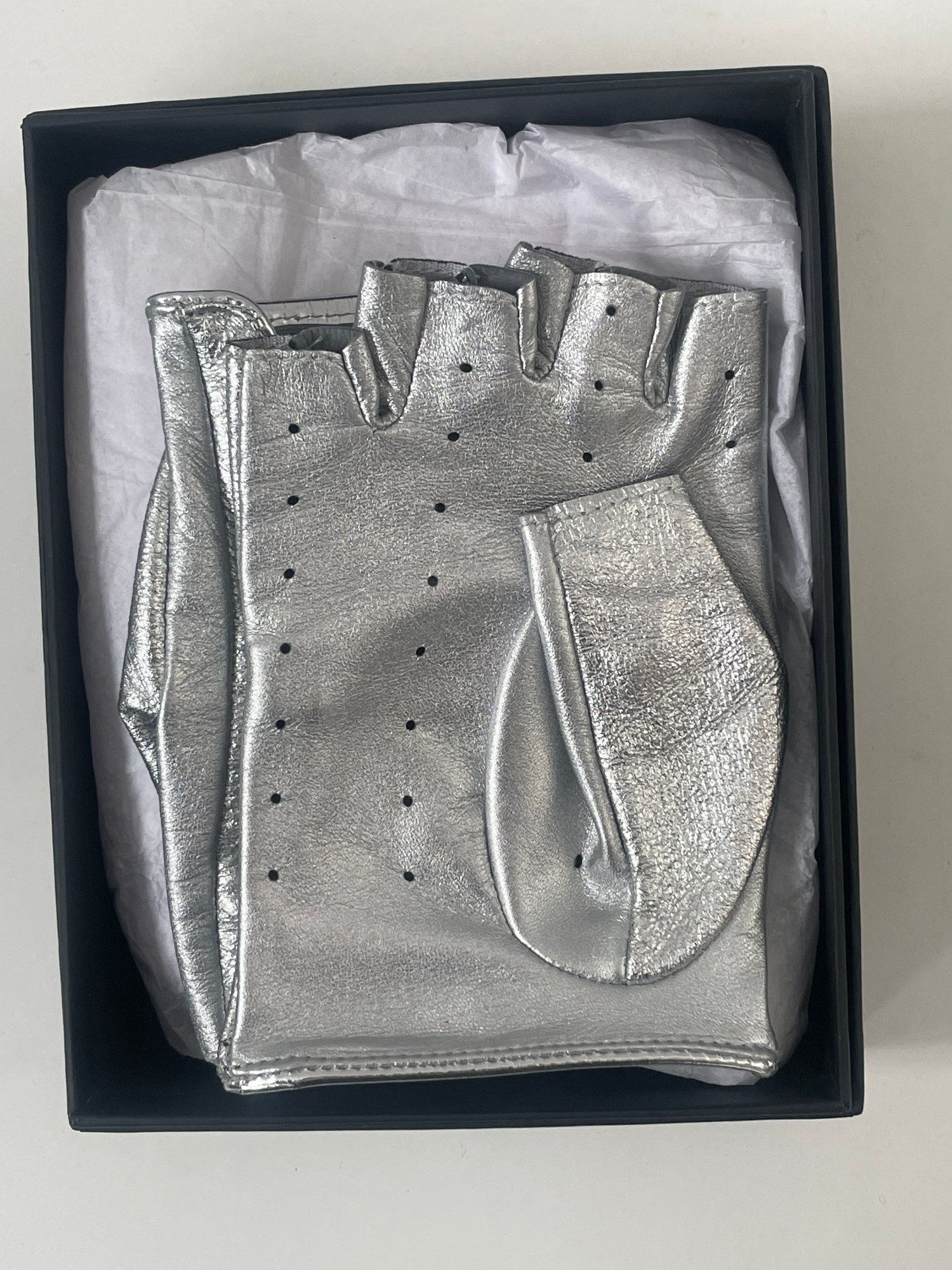 Providing an edgy alternative to the conventional glove, these pre-owned Chanel fingerless gloves will make any outfit stand out. Meticulously crafted from silver-toned lambskin and styled with a button closure and soft suede lining, add a futuristic twist to your outfit with these magnificent, eye-catching gloves.