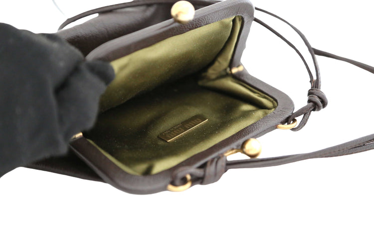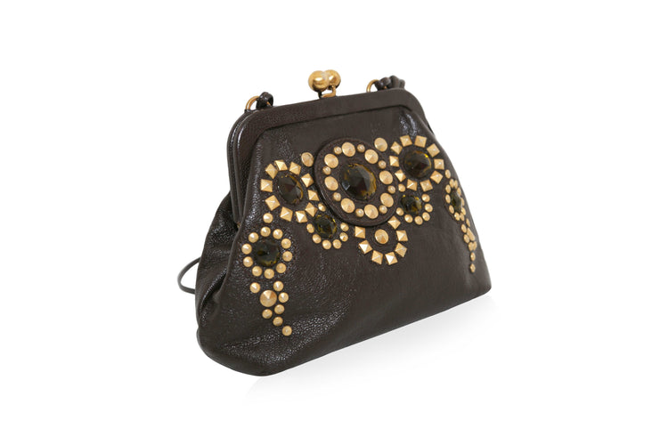 Channel your inner fashionista with our Mini Leather Bag from Miu Miu. This stylish crossbody bag features elegant embellishments, perfect for completing any trendy look. Don't sacrifice style for convenience, carry all your essentials in this must-have accessory.