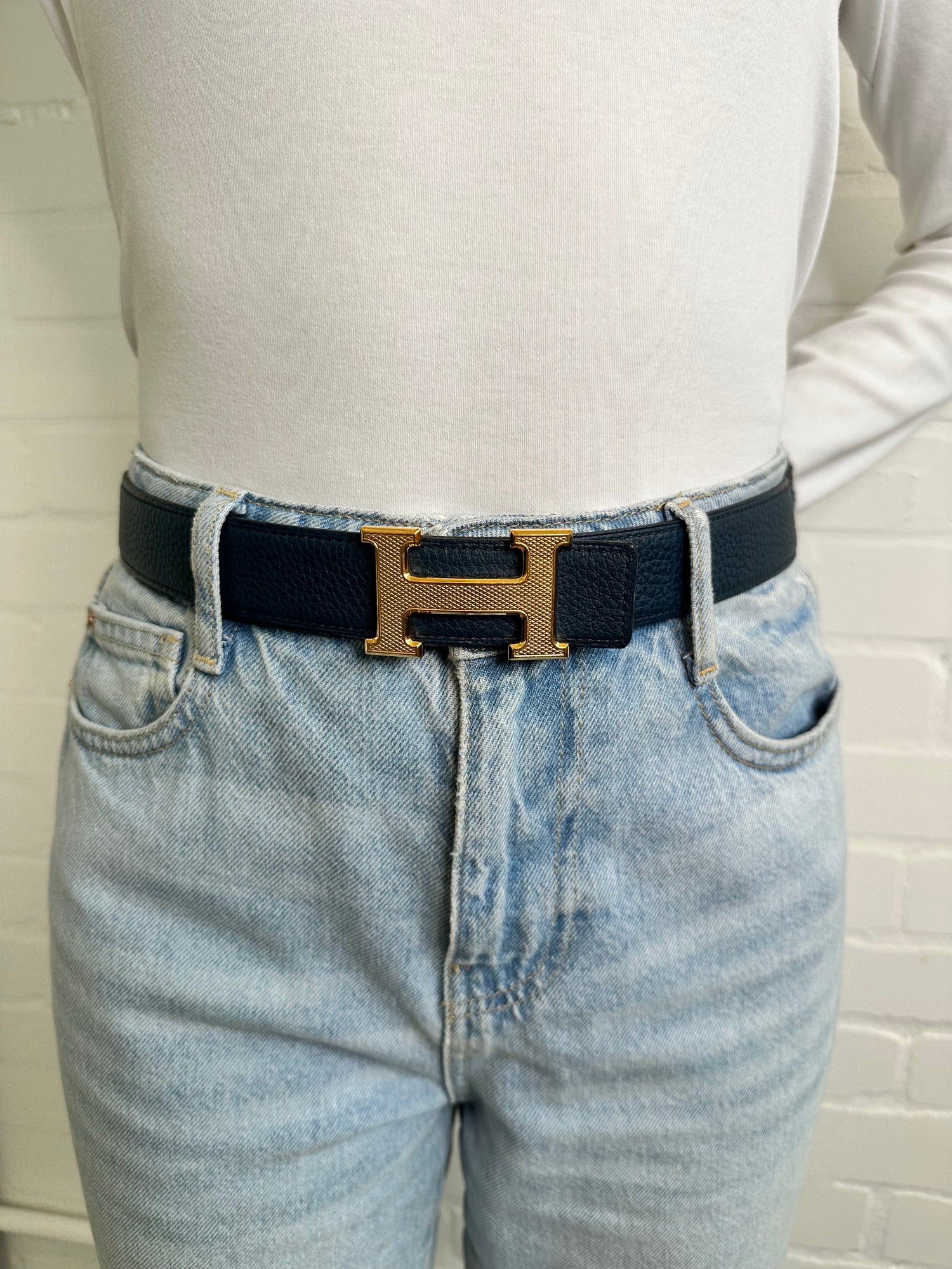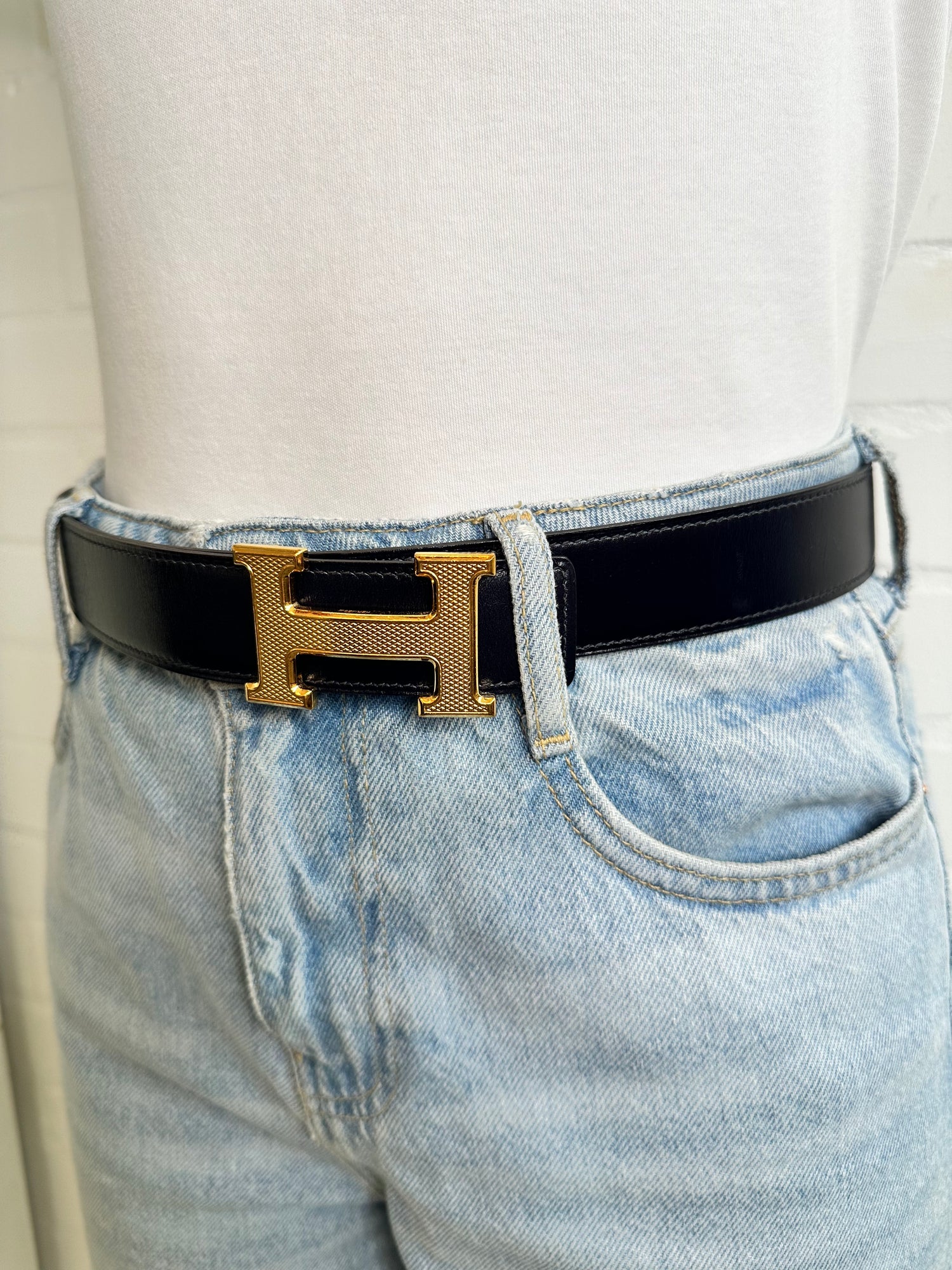 - Gold-tone removable H Guillochee buckle