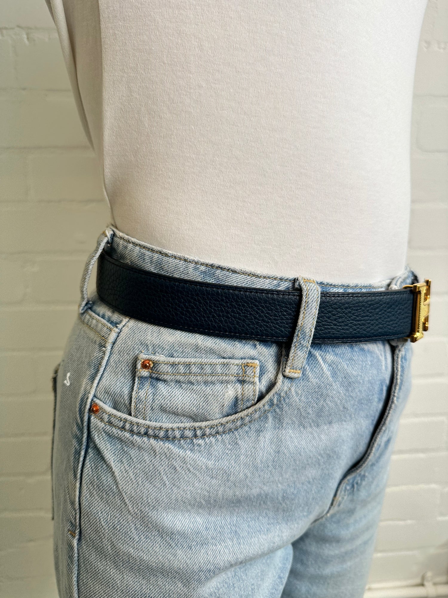 - Reversible navy smooth leather & grained blue leather