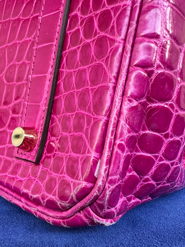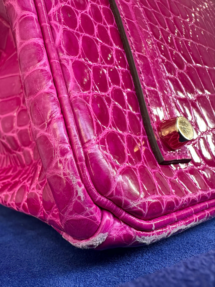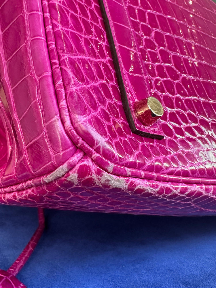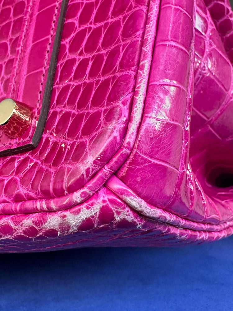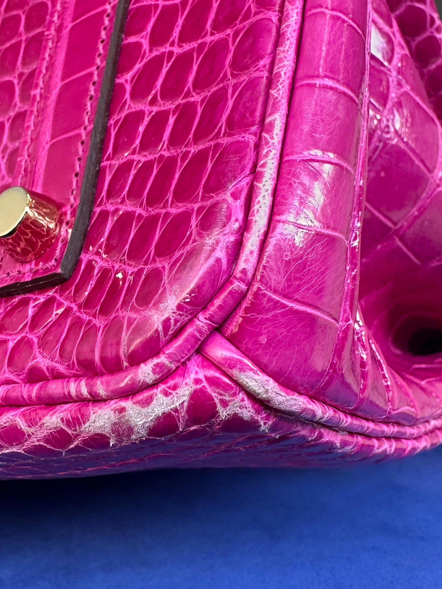 This pre-owned item is in good condition, with visible signs of wear. This includes significant scuffing on the corners, wear on the outer and bottom leather. Blue pen mark down the middle of the bag, close to the bottom. PVC still on the front belt hardware however there are visible scratches on the metal feet at the bottom - please refer to images for further details.