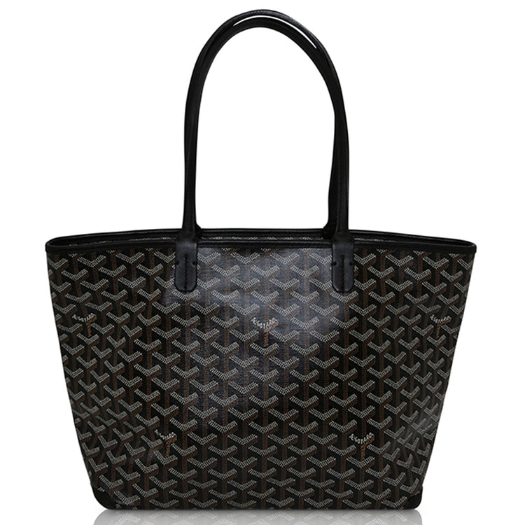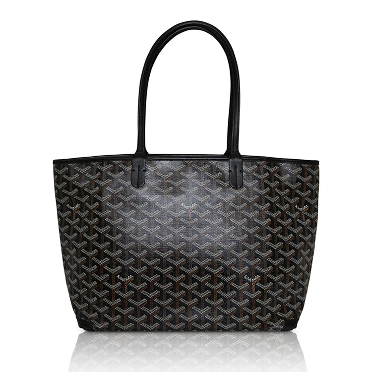 A nod to St. Louis, Goyard's Artois is within the same family. Though they are both tote bags that are crafted of Goyardine coated canvas, the Artois features longer handles for comfortable wear, and overstitched leather corners offer better protection against scratches and scuffs. This black Artois consists of a zipper closure for added security and an interior pocket for better organisation.