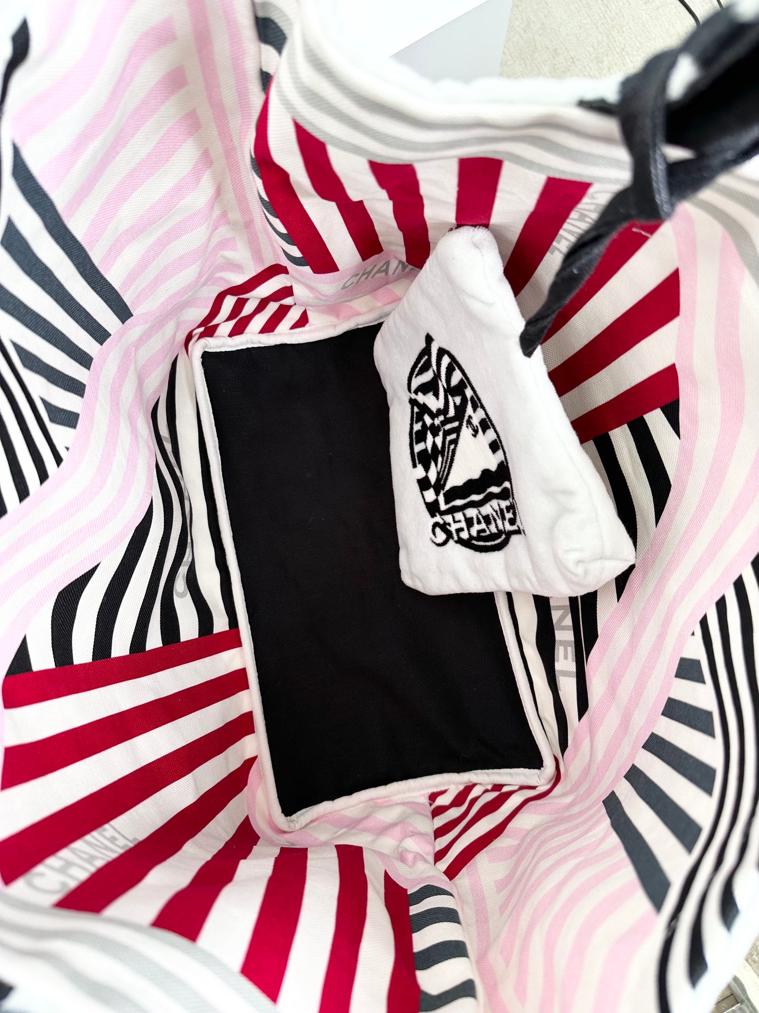 From the infamous 2019 Cruise collection set on the cruise ship La Pausa, this Chanel La Pausa Terry Tote is a perfect addition to your beach-ready wardrobe. Made 100% from cotton, this bag is lightweight, washable and easy to carry. Inside comes with a small removable pouch and colourful lining.