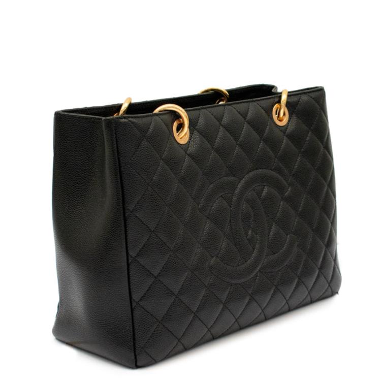 Indulge in timeless elegance with this exquisite pre-loved Chanel Grand Shopping Tote Handbag in classic Black leather. Crafted from luxurious Caviar Leather, this authentic piece exudes sophistication and style.