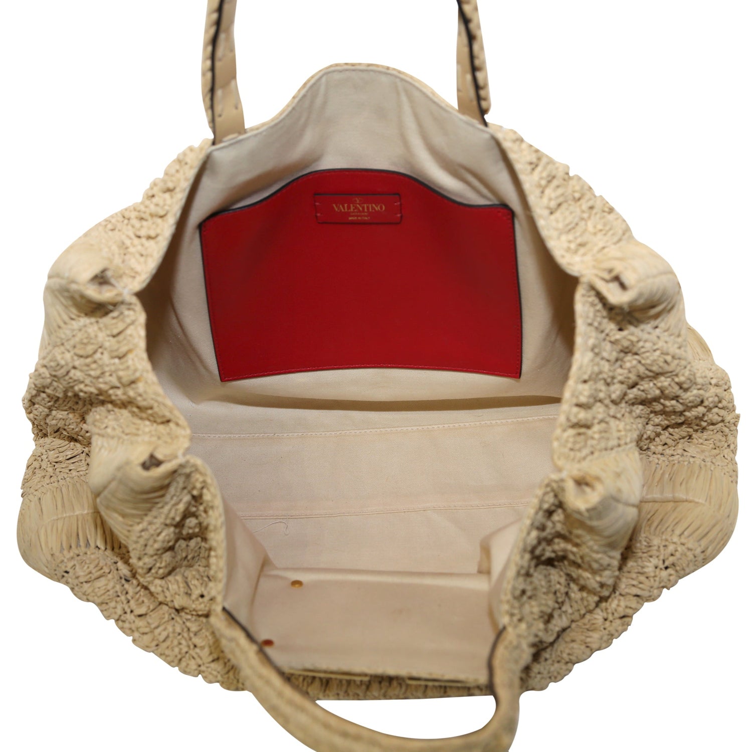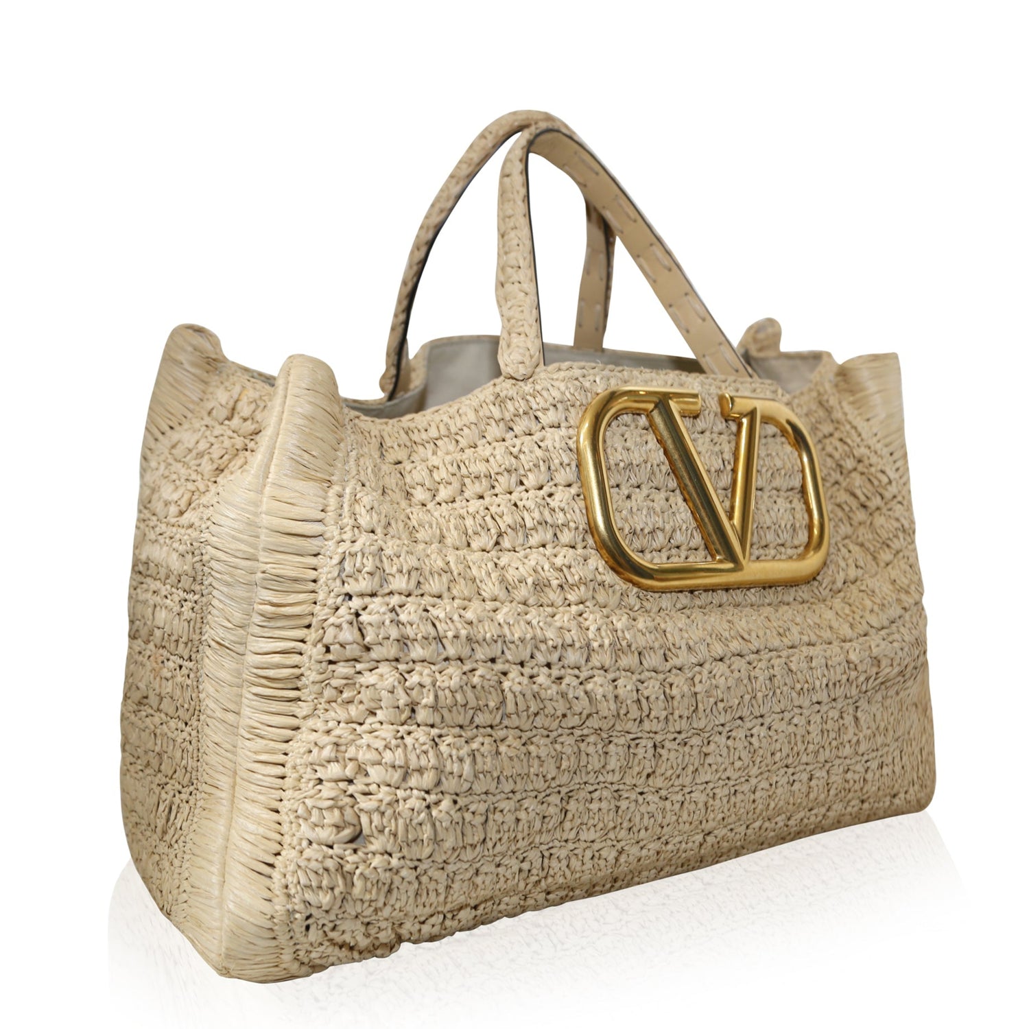 Crafted from naturally woven raffia, this stunning 'In It' bag from Valentino showcases the brand's tasteful aesthetic and meticulous design. Featuring a lovely hue and the brand logo at the front, it also has two top handles and comes with a dust bag.