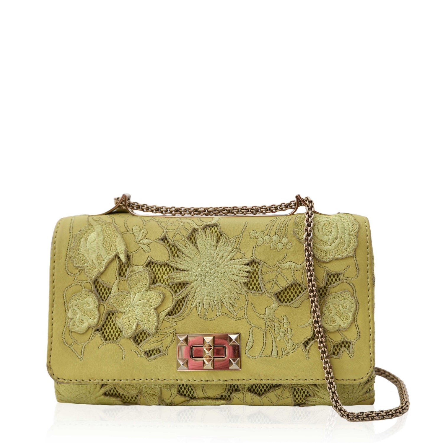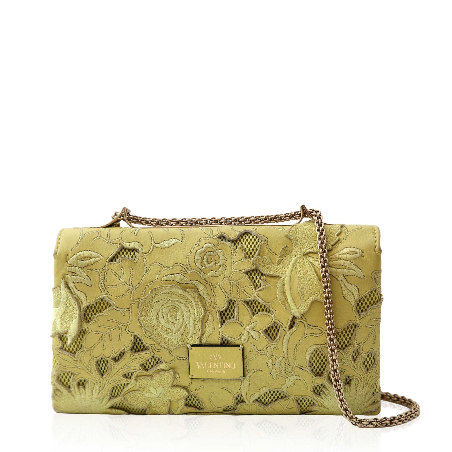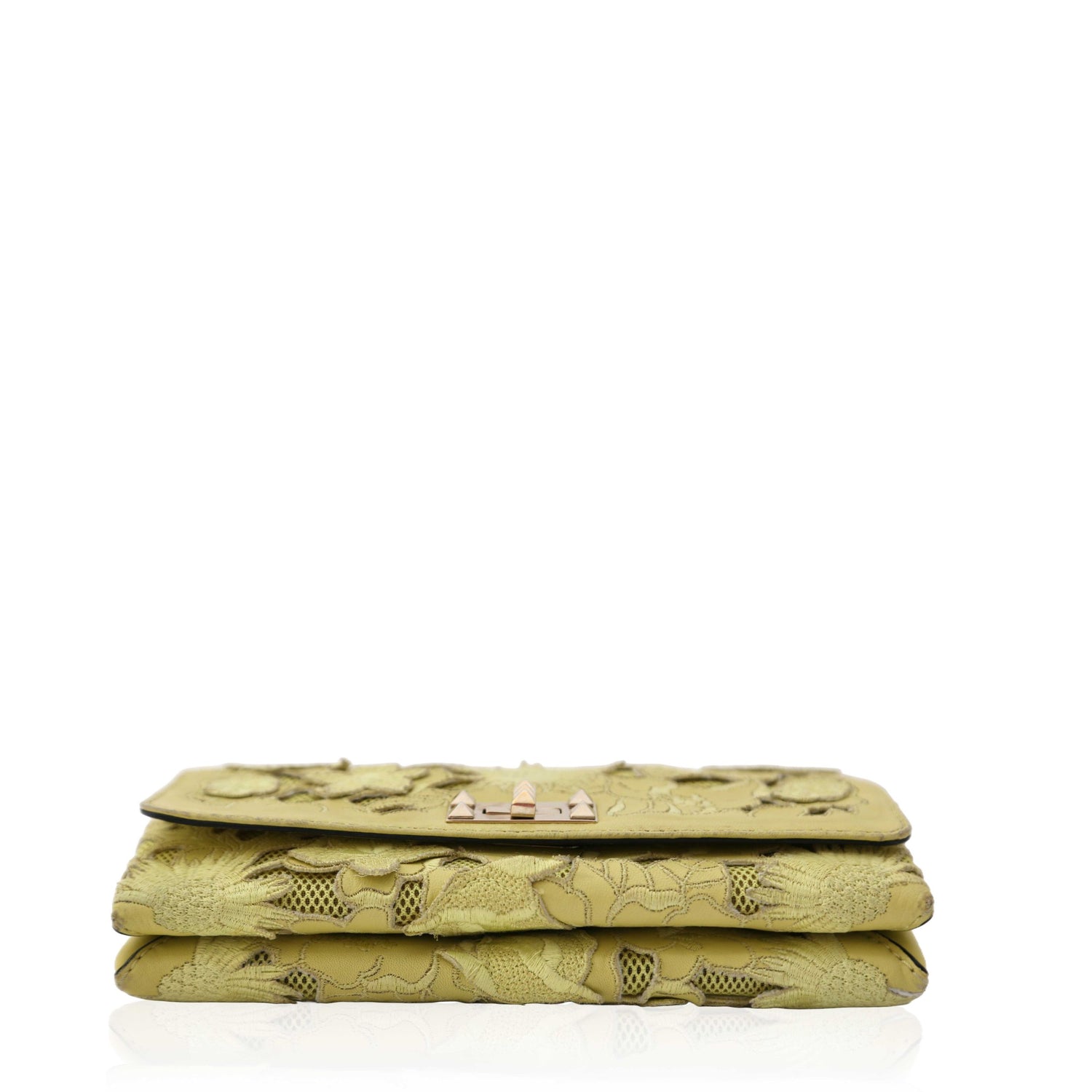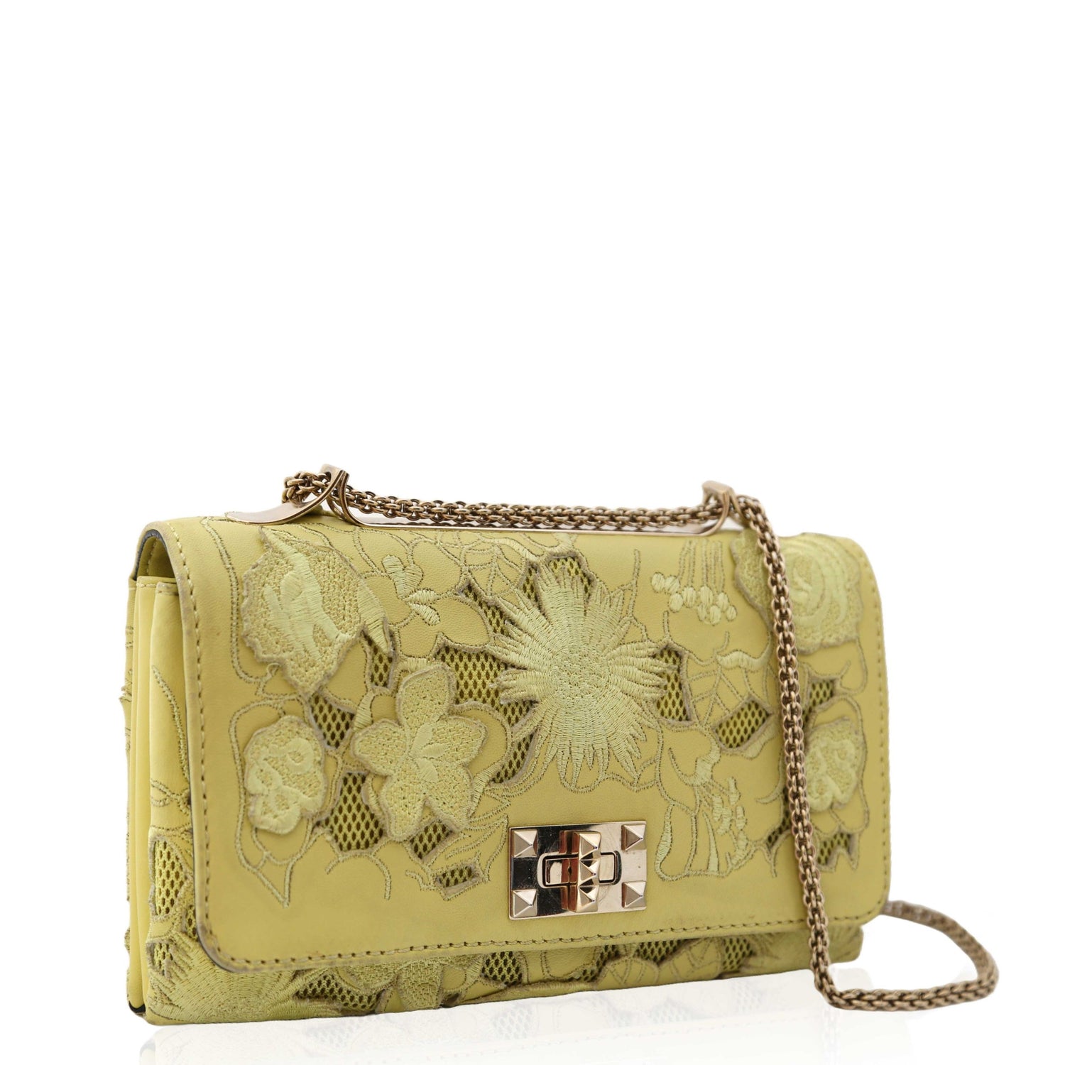 Valentino Yellow Leather Lace Cut-Out Girello Flap Bag