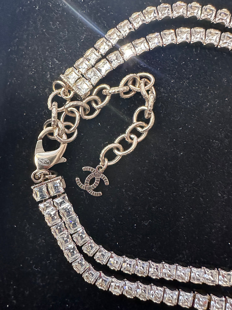 Set in the Temple of Dendur at the Metropolitan Museum of Art in New York City, the Chanel Pre-Fall 2019 runway was a chic mash-up of Ancient Egypt and New York. This rainbow drop statement necklace is artfully embellished with multicoloured rhinestones and the iconic interlocking CC logo. This hard-to-find statement necklace also has a spring-ring fastening and comes complete with the original box.