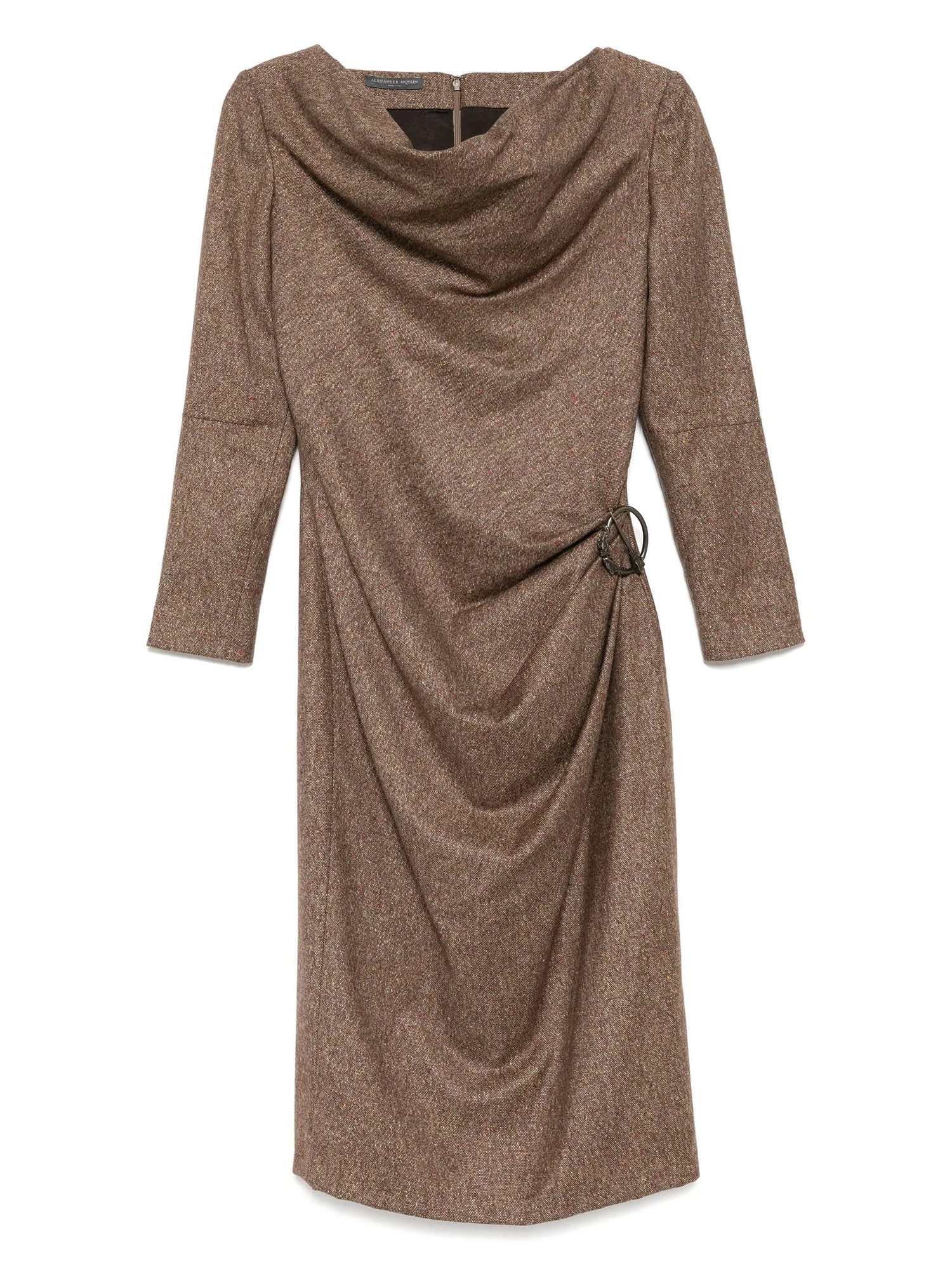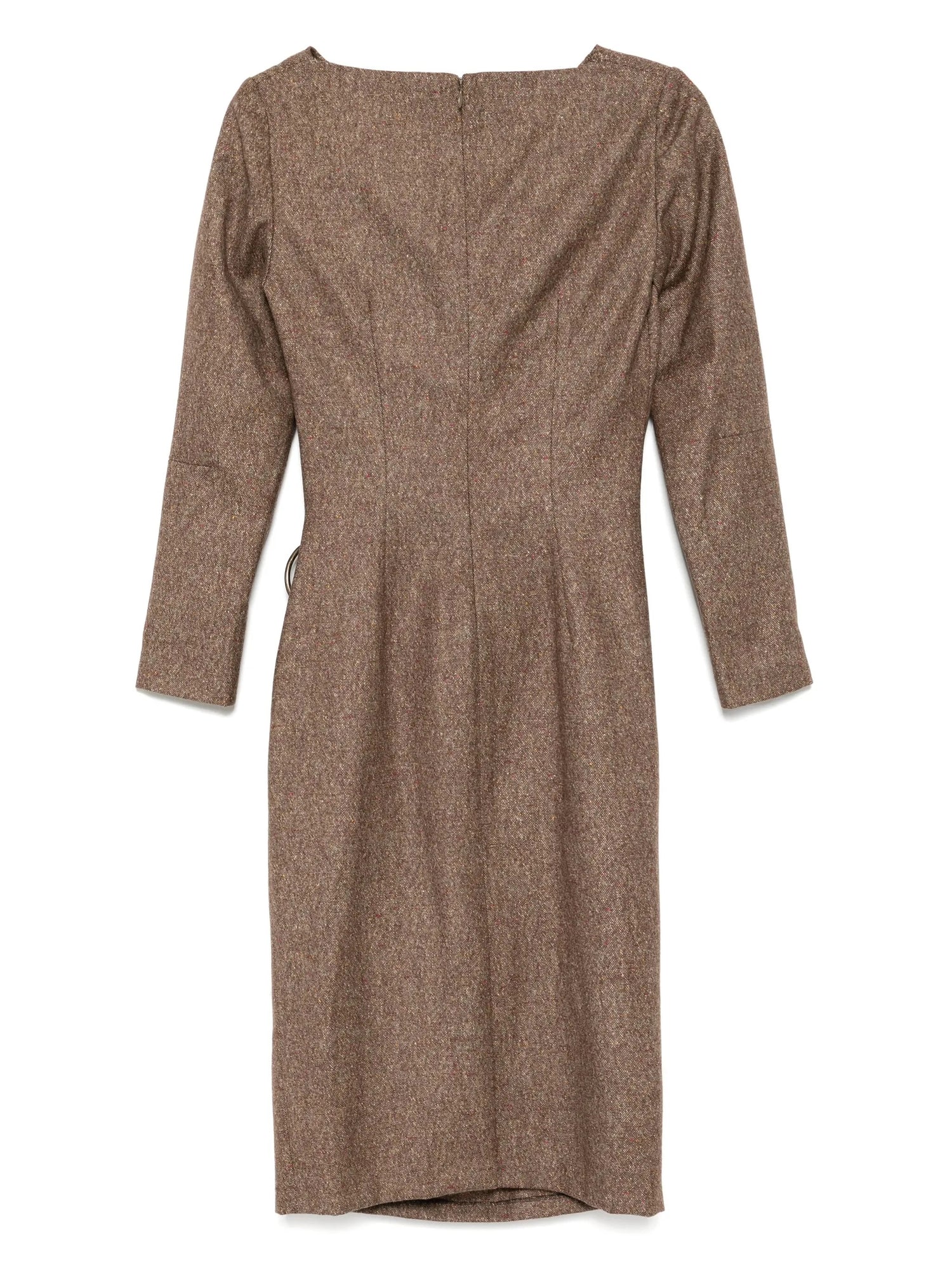 Brown Wool-Blend Brooch Dress