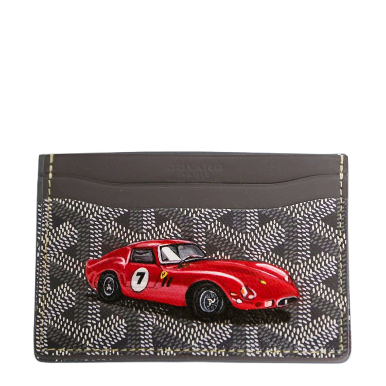 Crafted from Goyardine Canvas, a coloured textile made from cotton, linen and hemp, this grey monogram Ferrari Wallet from Goyard is especially hand-painted as a part of Rewind Vintage's Emotional Baggage collection. Both whimsical and functional, this piece is coated for durability, which gives it a leather-like look.