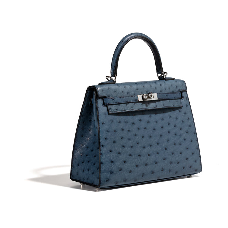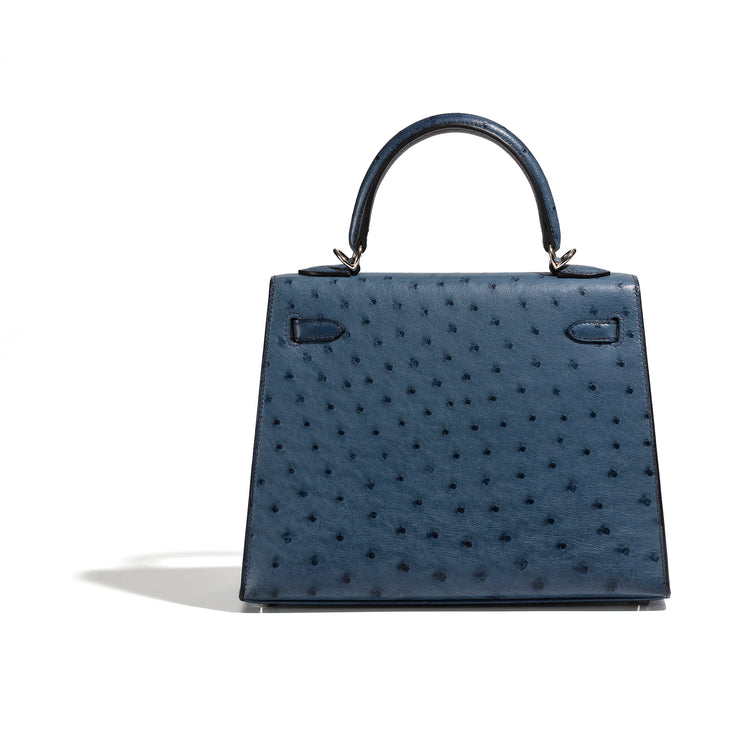 - Hermes Kelly 25cm Bleu Roi Ostrich PHW