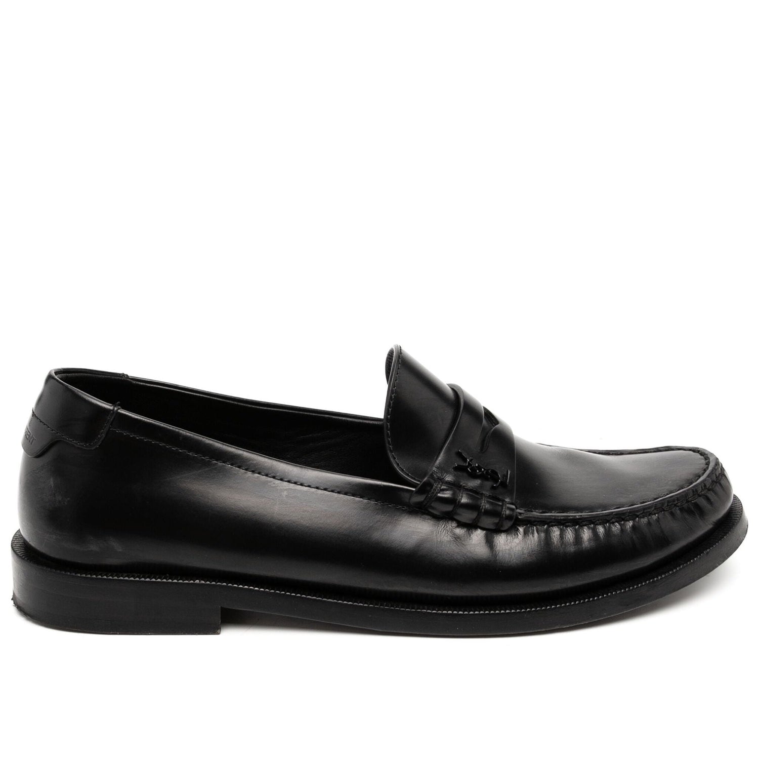 Elevate your style with Saint Laurent's black loafers. Featuring round toes, leather insoles, and low heels, these shoes offer both comfort and fashion-forward design. Whether paired with skinny jeans or shift dresses, they add a touch of androgyny to any look.