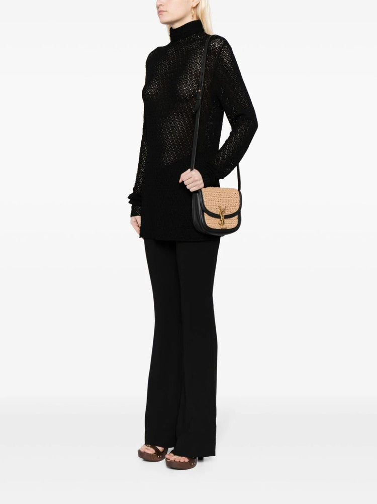 Made with high-quality raffia material, this YSL cross body bag exudes sophistication and elegance. Perfect for any occasion, its compact size and adjustable strap make it versatile and easy to carry. Elevate your fashion game with this luxurious accessory from Saint Laurent.