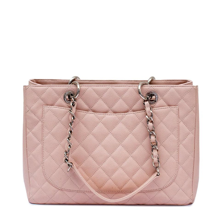 This chic and durable Chanel Caviar Leather Grand Shopping Tote Bag will be your new favourite bag. It is part of Chanel's classic caviar collection which continually increases in value. It is made of beautiful quilted caviar leather with a bold CC logo on the front and silver tone hardware. It is a timeless piece that will be around forever.